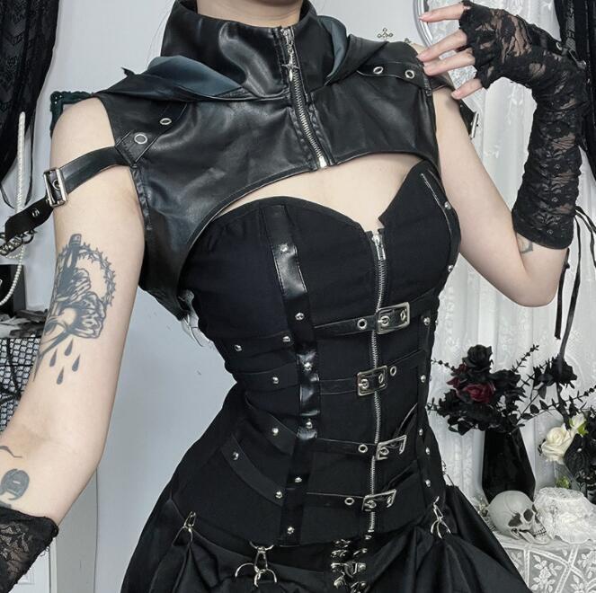 暗黒系トップス ジャケット パーカー フェイクレザー ダンス衣装