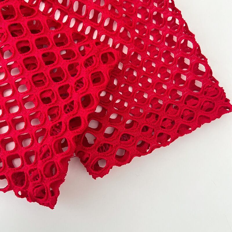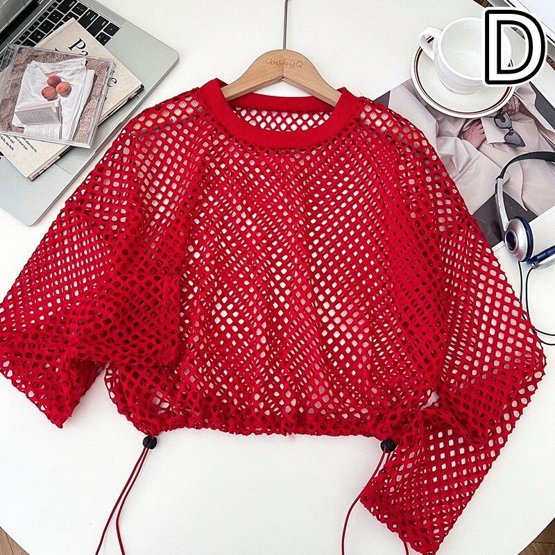 欧米風セクシー 万能コーデ 丸首 透かし編みショート丈ドローストリング長袖メッシュトップス