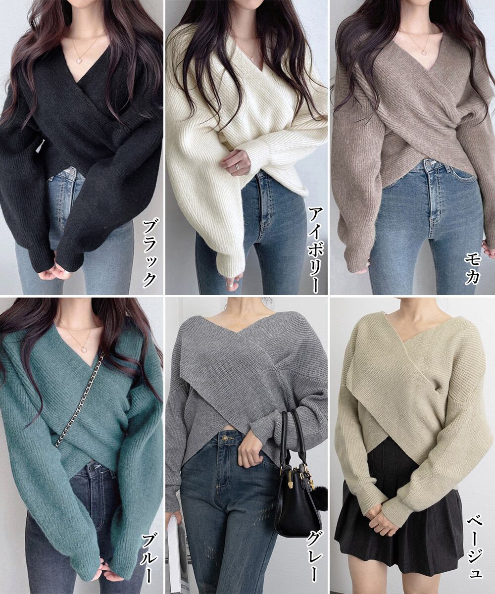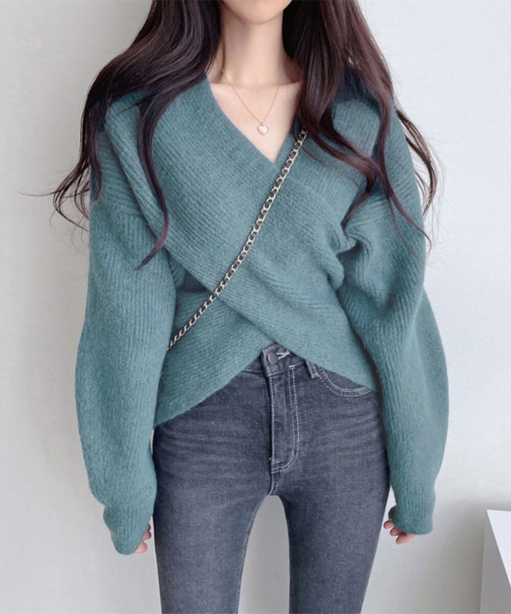 クロスに重なったデザインが主役級なカシュクールニットトップス