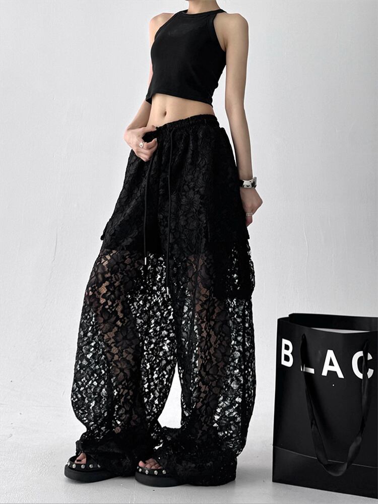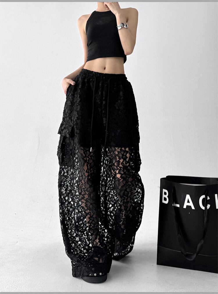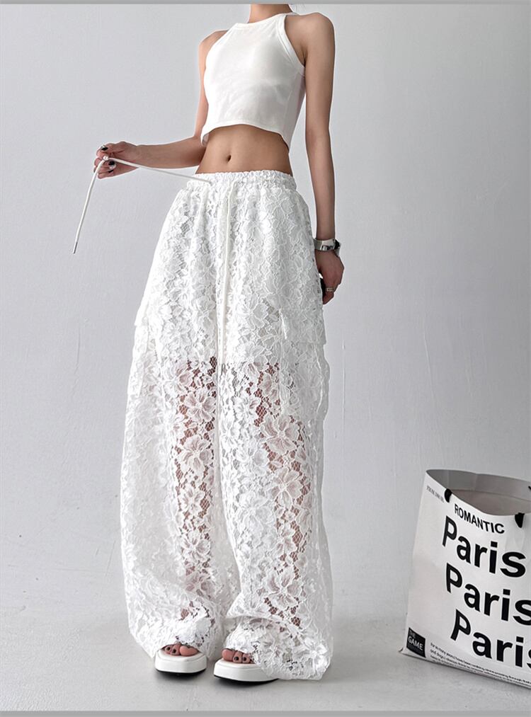 【新作】透け感レース 夏用ワイドパンツ おしゃストレッチ 通勤・リゾート対応 2025夏季