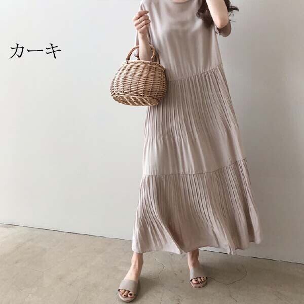 シフォン半袖マキシワンピース 通勤夏新作