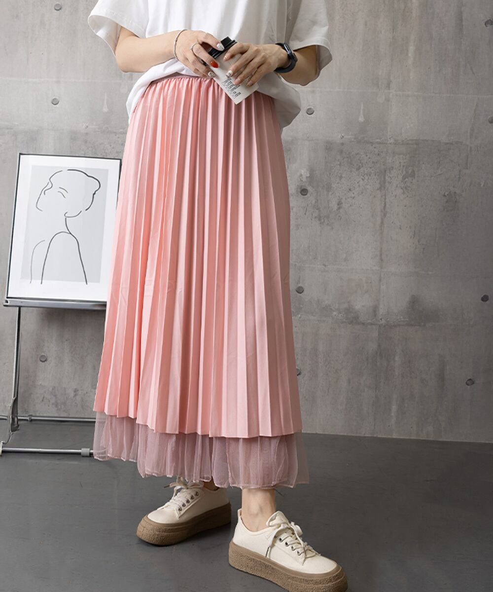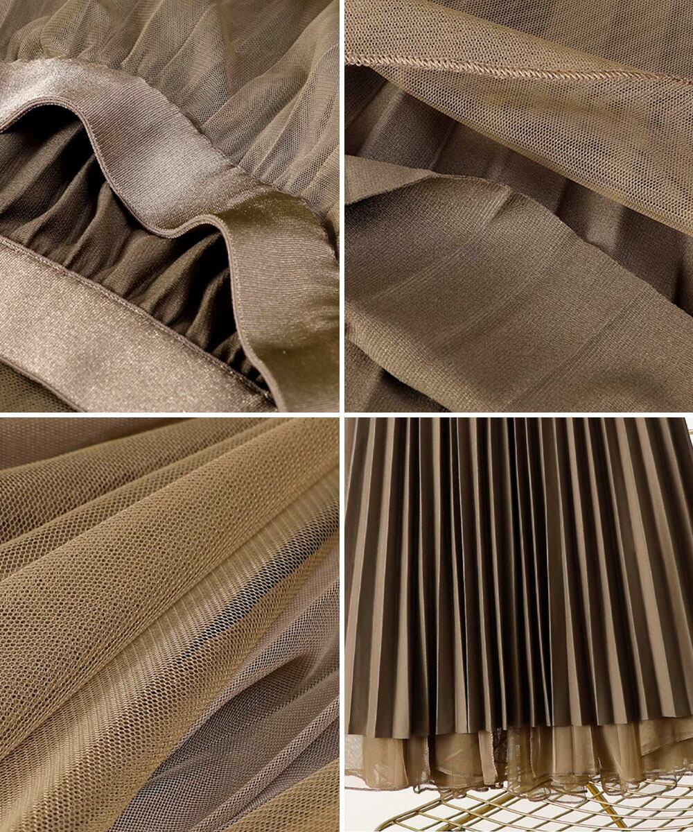 表側は軽やかなチュール、裏側はきれいめなプリーツ仕立て。