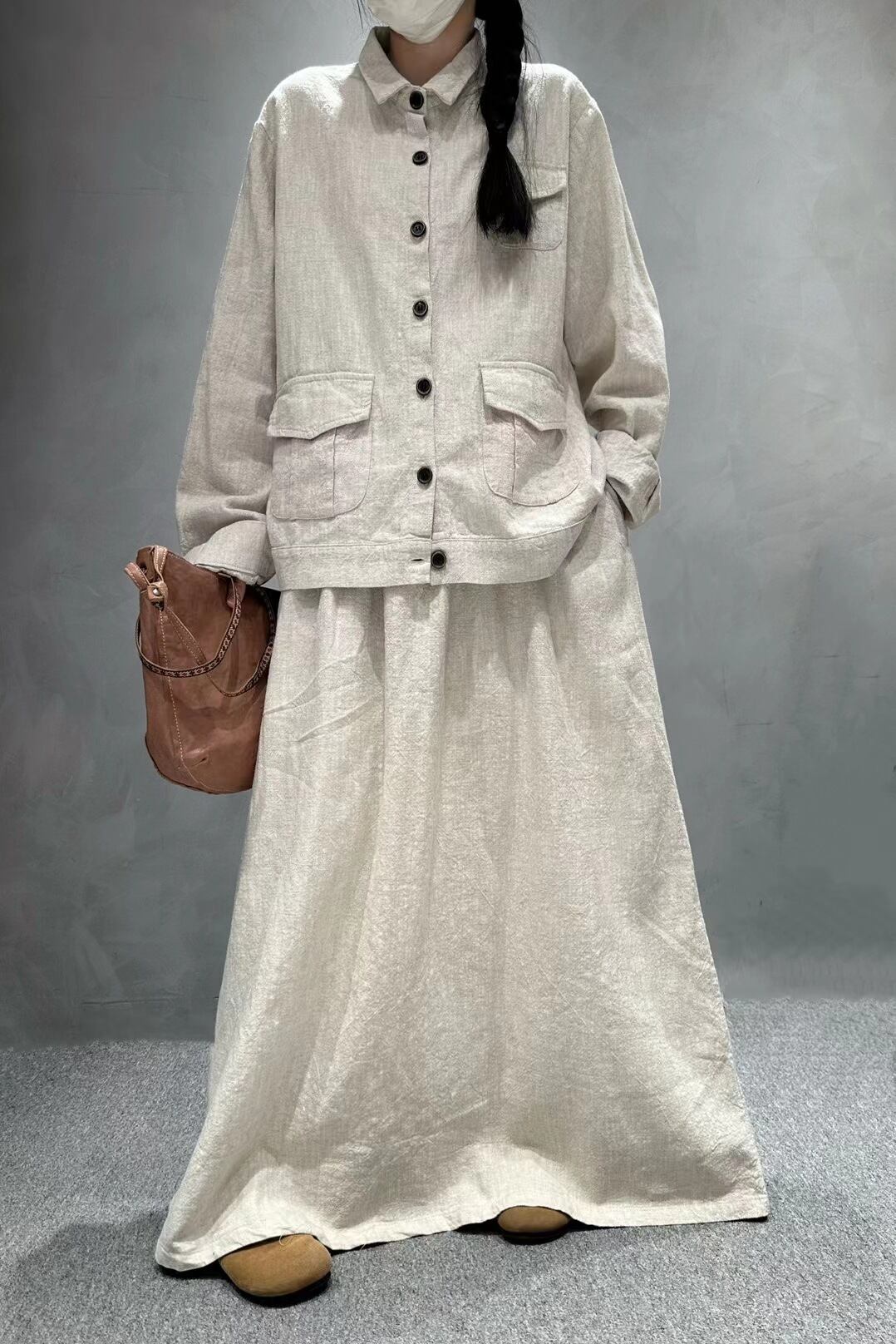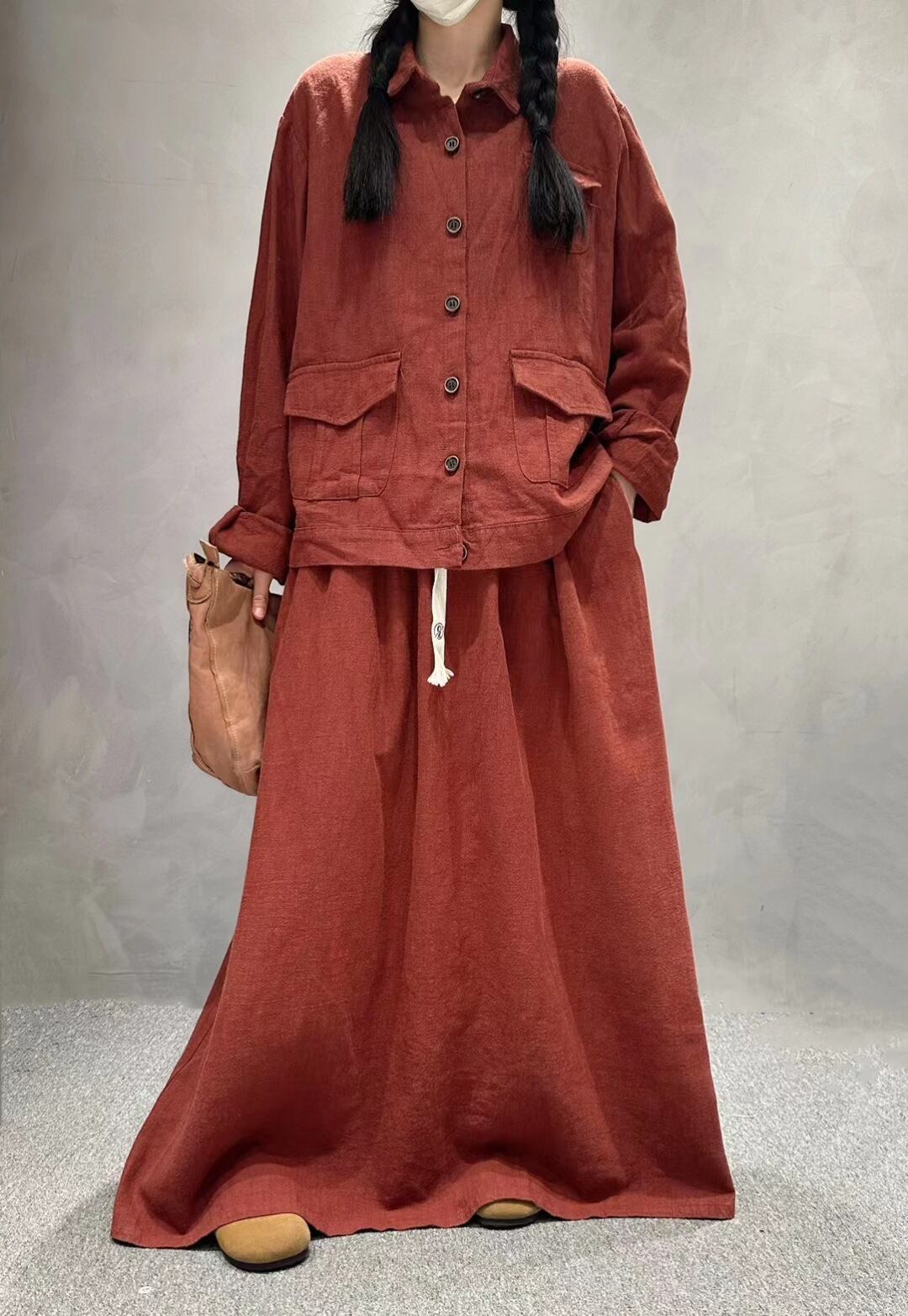 レディース 【麻100%】長袖シャツ 7色