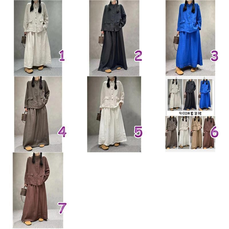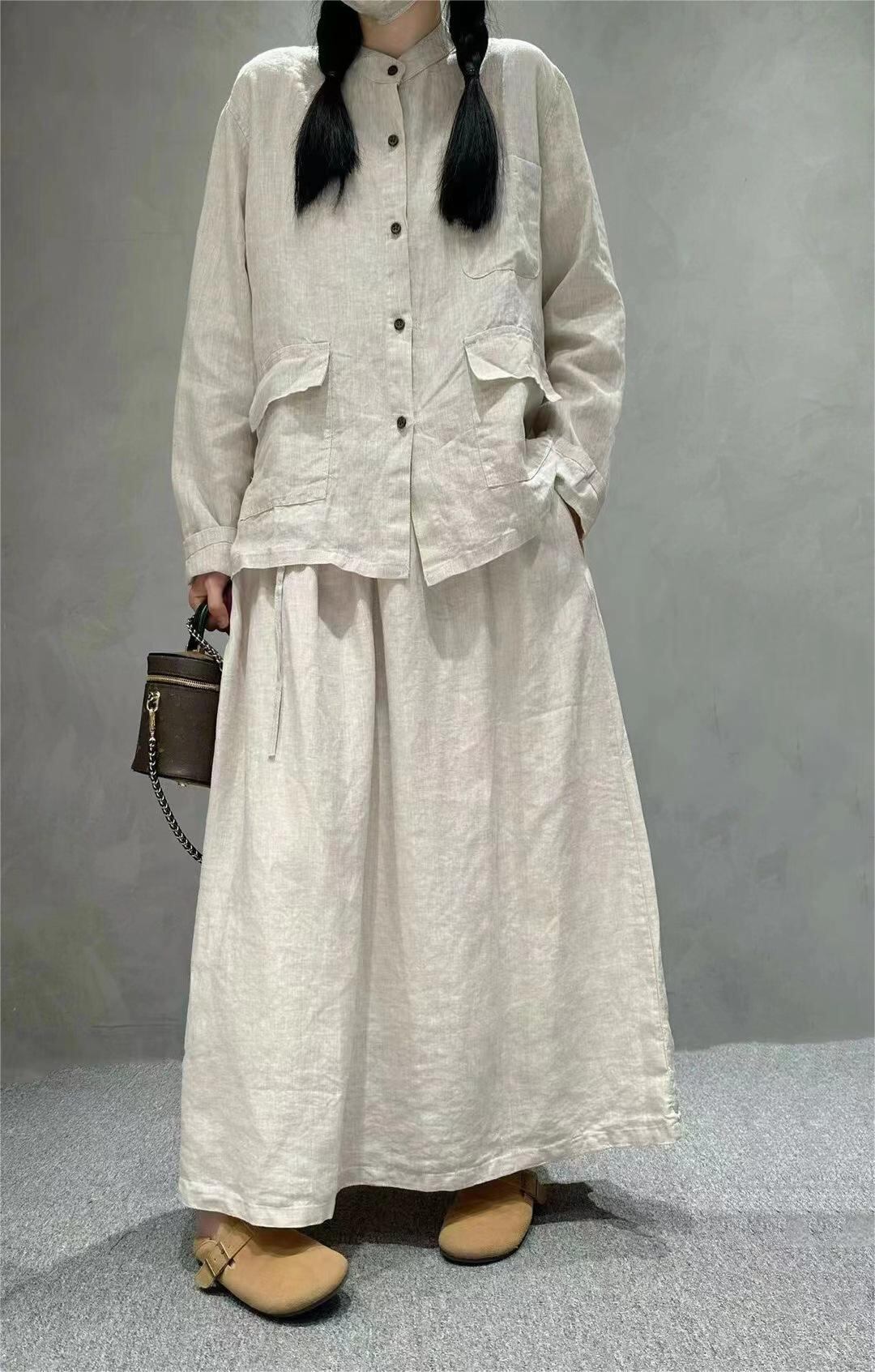 レディース 【麻100%】長袖シャツ 7色