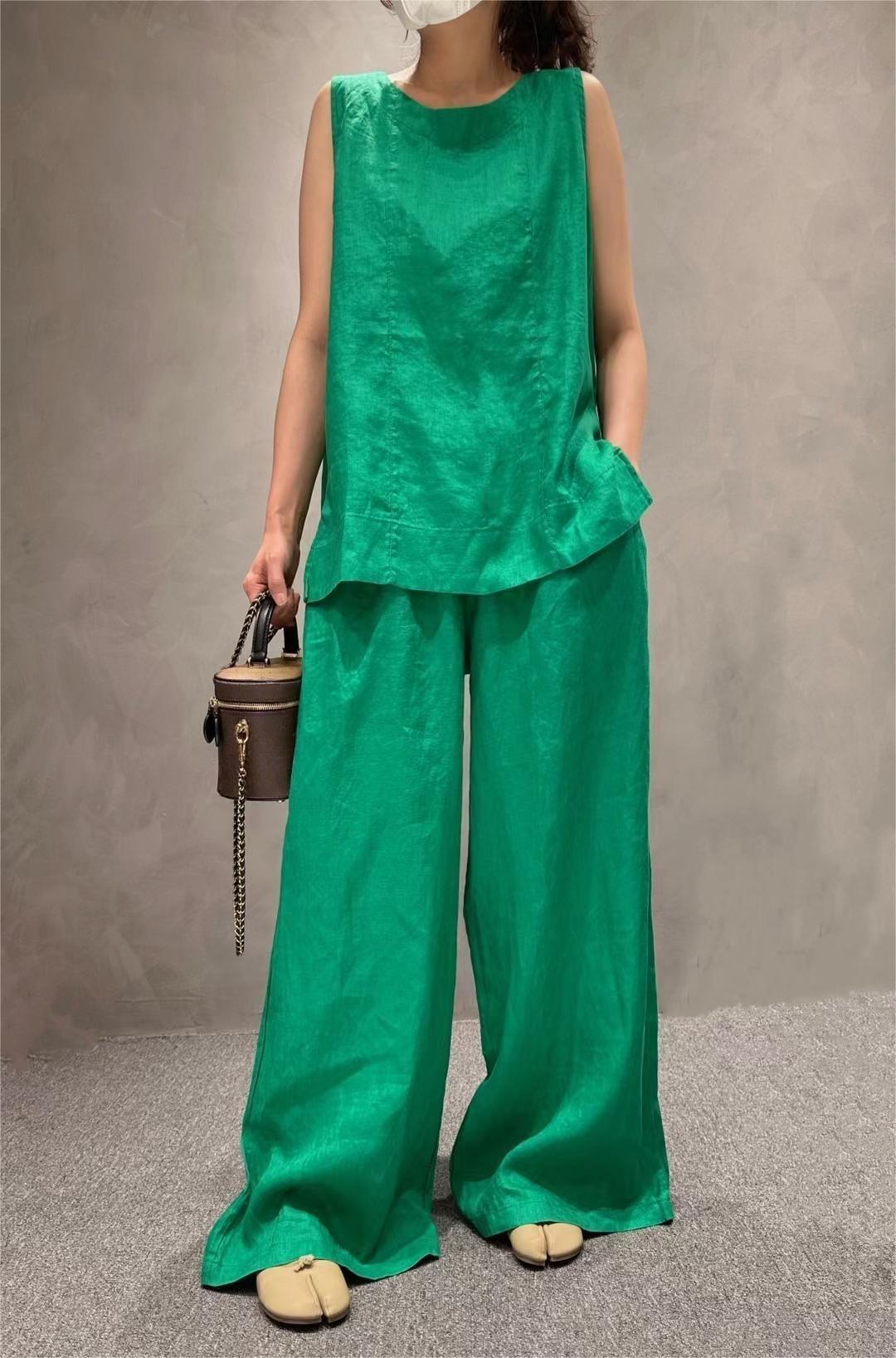 レディース 【麻100%】ノースリーブブラウス 18色