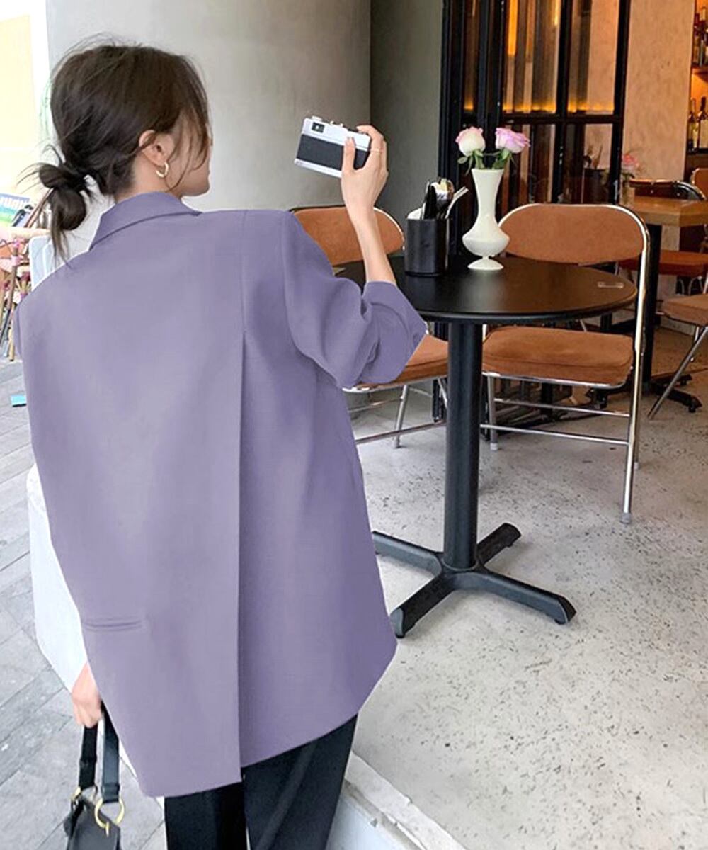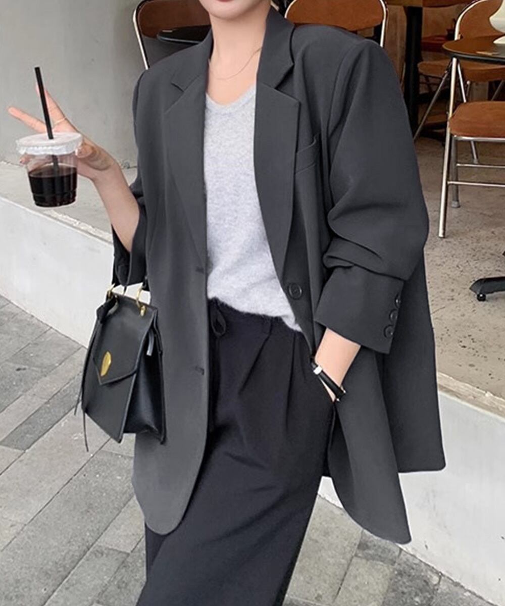 今年らしく、身頃にゆとりを持たせたテーラードジャケット
