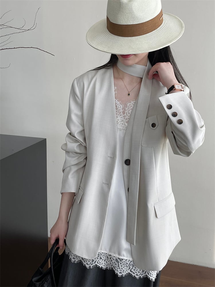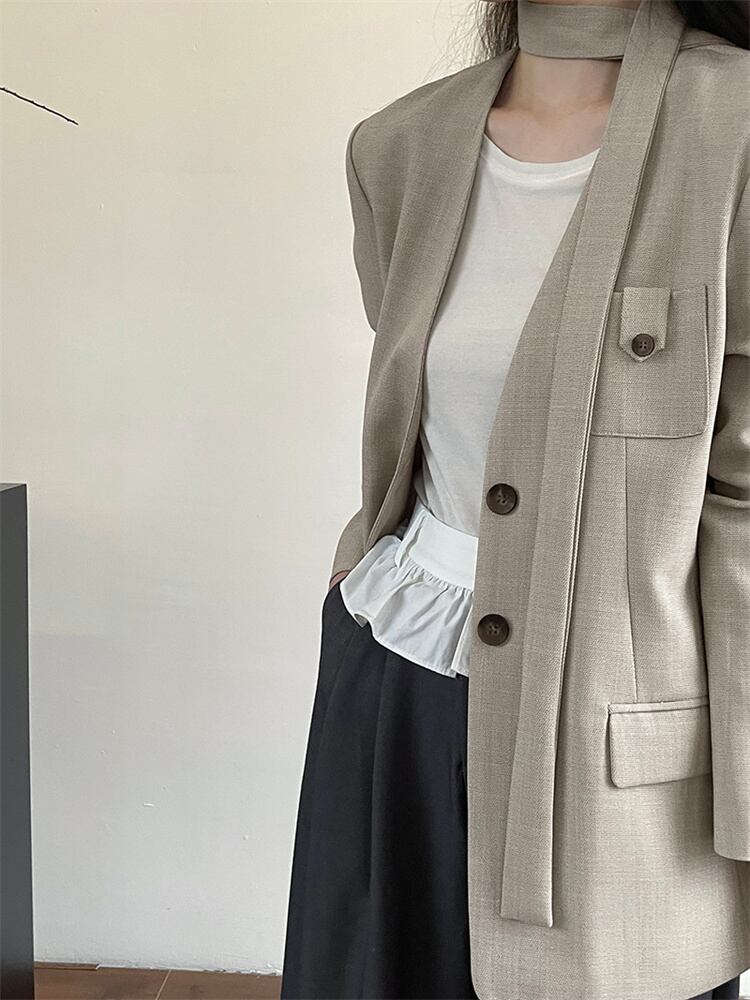 優雅女性らしい 春の大人カジュアル 2025新作Vネックジャケット レディース 通勤おしゃれコーデ