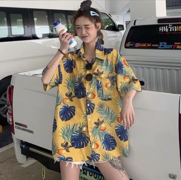 ・男女で着られる大きめのアロハシャツ。
