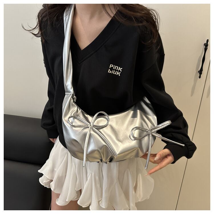 ・上品さを感じさせる光沢感のあるショルダーバッグ。