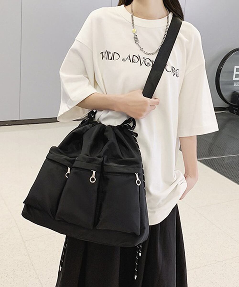 ドローストリングショルダーバッグ 大容量