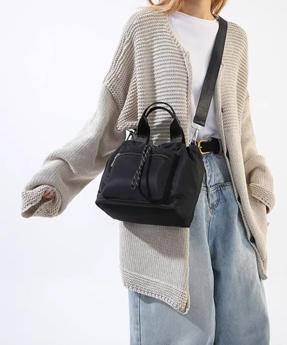 長さ調節可能なショルダーストラップ付きで、肩掛けも斜め掛けも自由自在