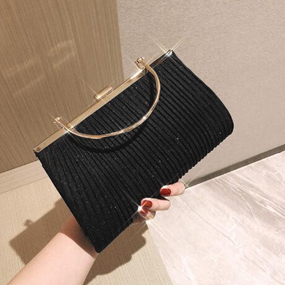 華やかなラメ生地にプリーツ加工を施し、上品さをプラスした3wayがま口パーティーバッグです