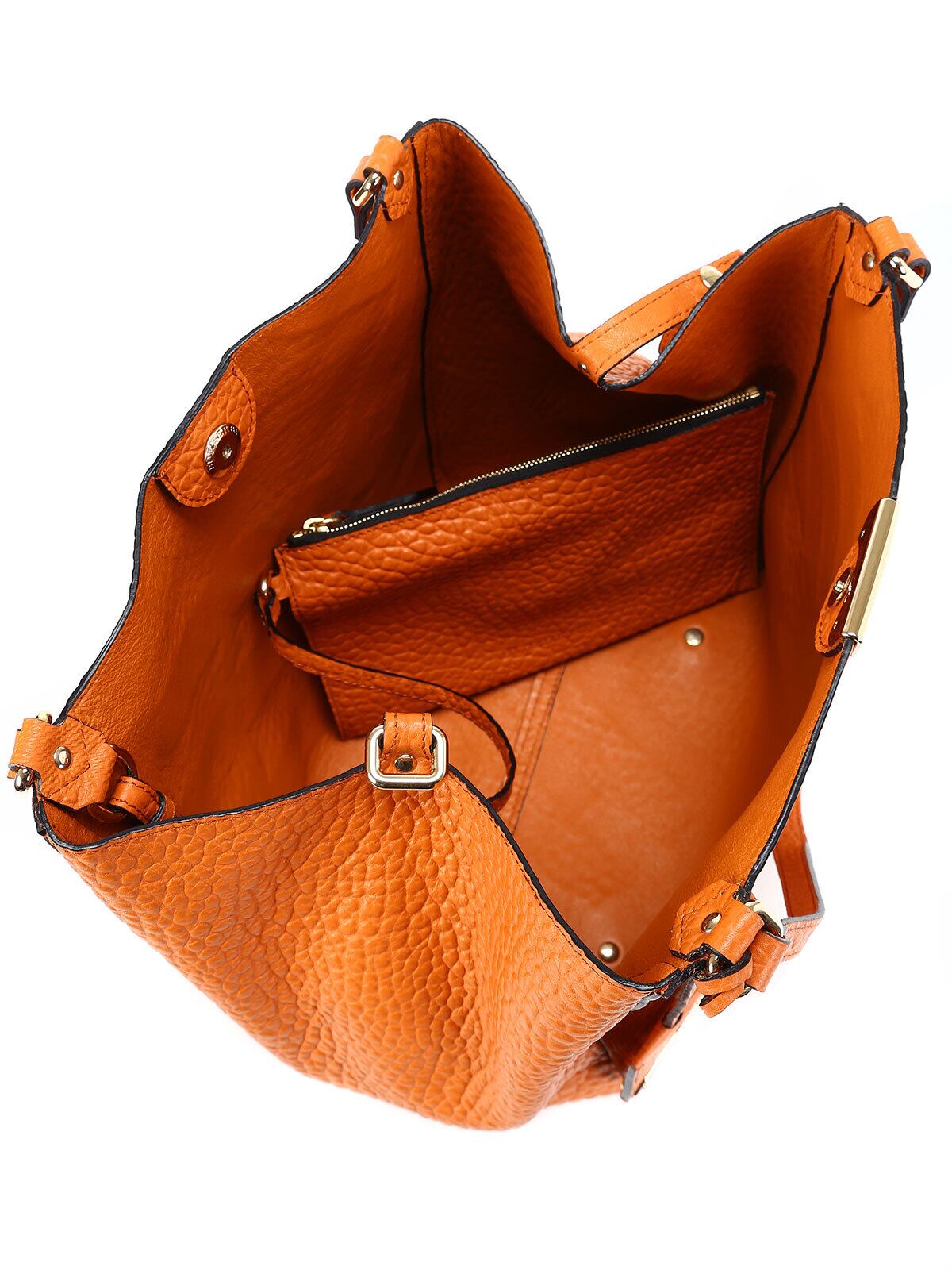 鮮やかなコーラルオレンジカラーが目を引く、エレガントなショルダーバッグ。シンプルでありながら、華やかさを演出するデザイン。調整可能なショルダーストラップが、実用性を高めており、どんなコーディネートにも合わせやすいアイテムです。