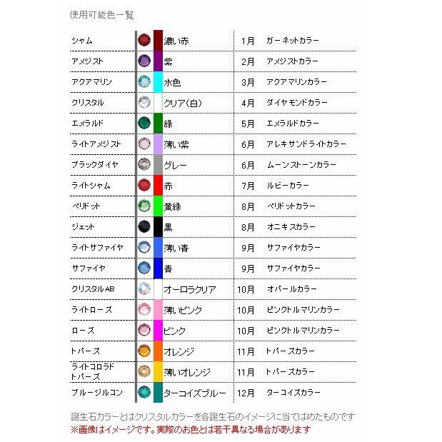 誕生石カラーやメンバーカラーにも合わせた18色のクリスタルの中からお好きな色をお選び頂けます。