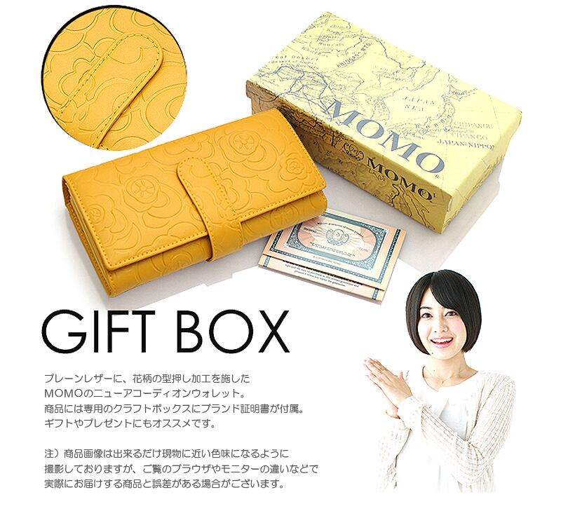 【MOMO】花柄型押しプレーンレザーアコーディオンウォレットAN-3006■レディース牛革長財布■3色展開■