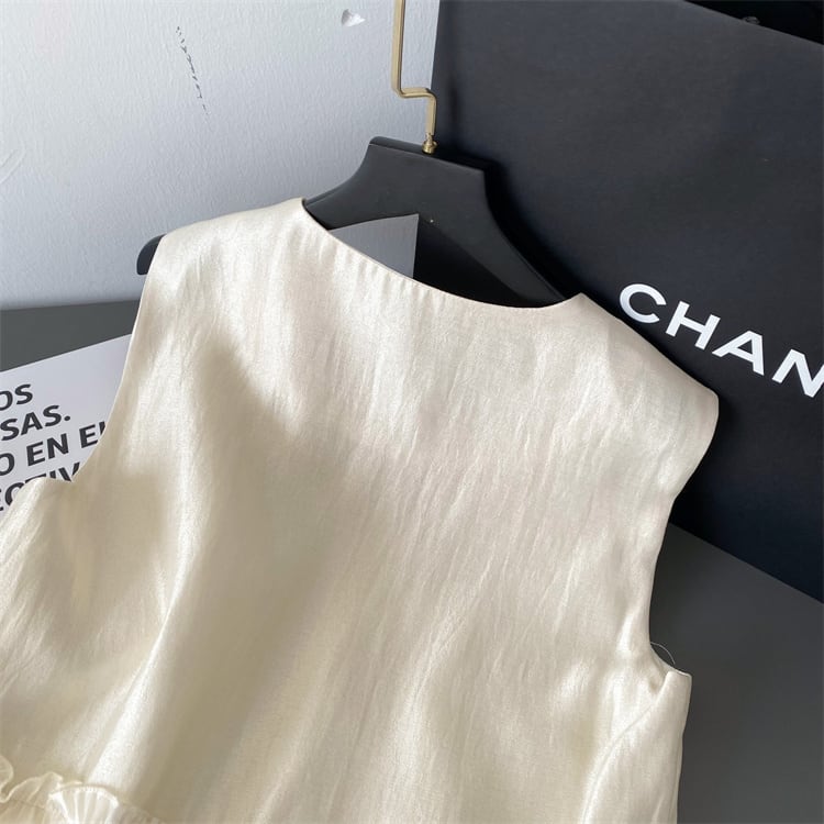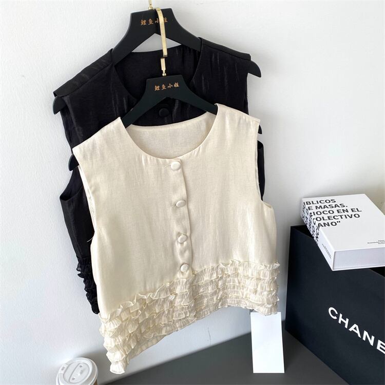 軽量 ノースリーブ ベスト 胸元フリル ストレートシルエット 夏用アウター
