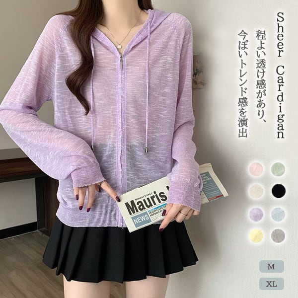 2025新作 レディース シアー パーカー カーディガン 羽織 冷房対策 紫外線 UV フード付き