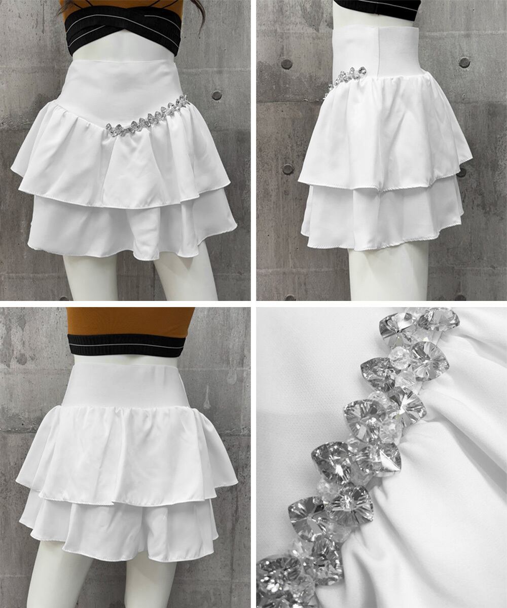 キラキラのラインストーンが映える、2層フリルのミニ丈フレアスカート。
