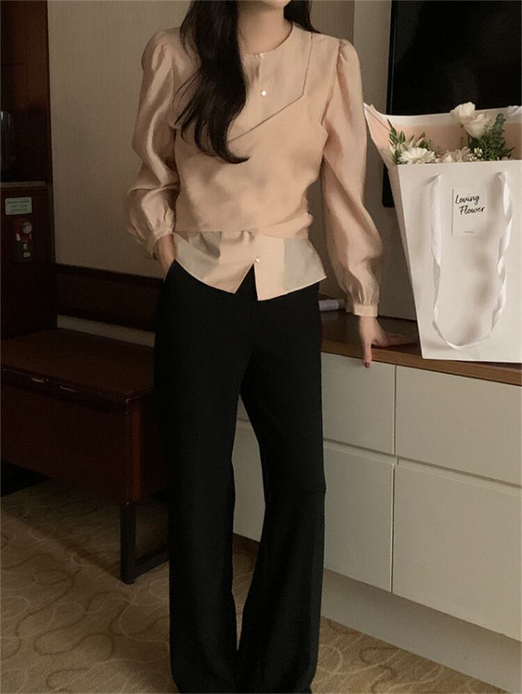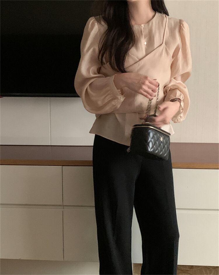 丸首交差ベルト 見せかけツーピース ロングスリーブシャツ