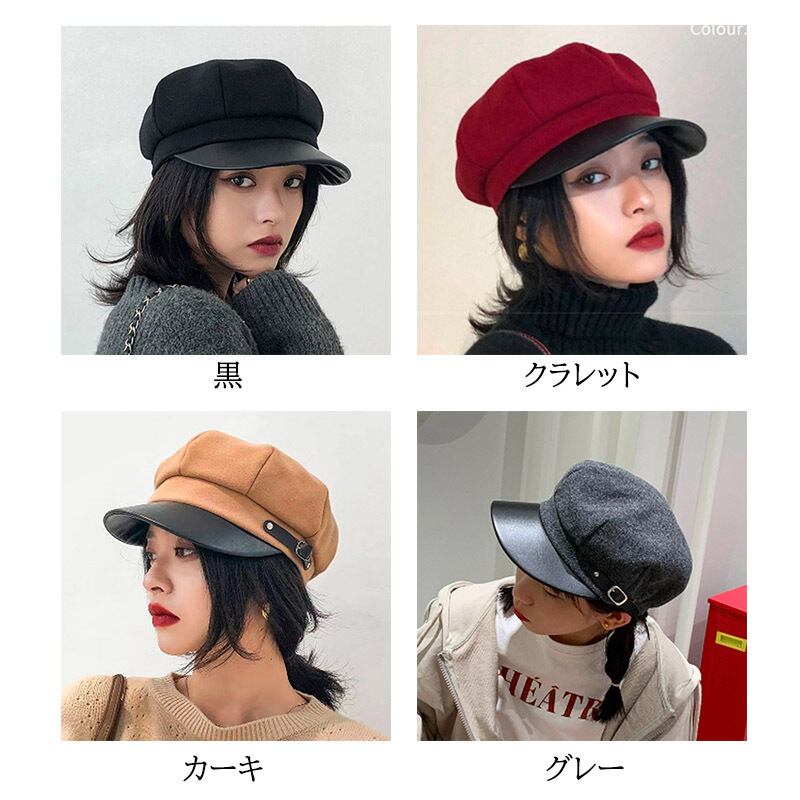 レディース ベレー帽 つば 小顔 帽子 通気性 防寒 かわいい 黒 サイズ調整 カーキ 立体設計
