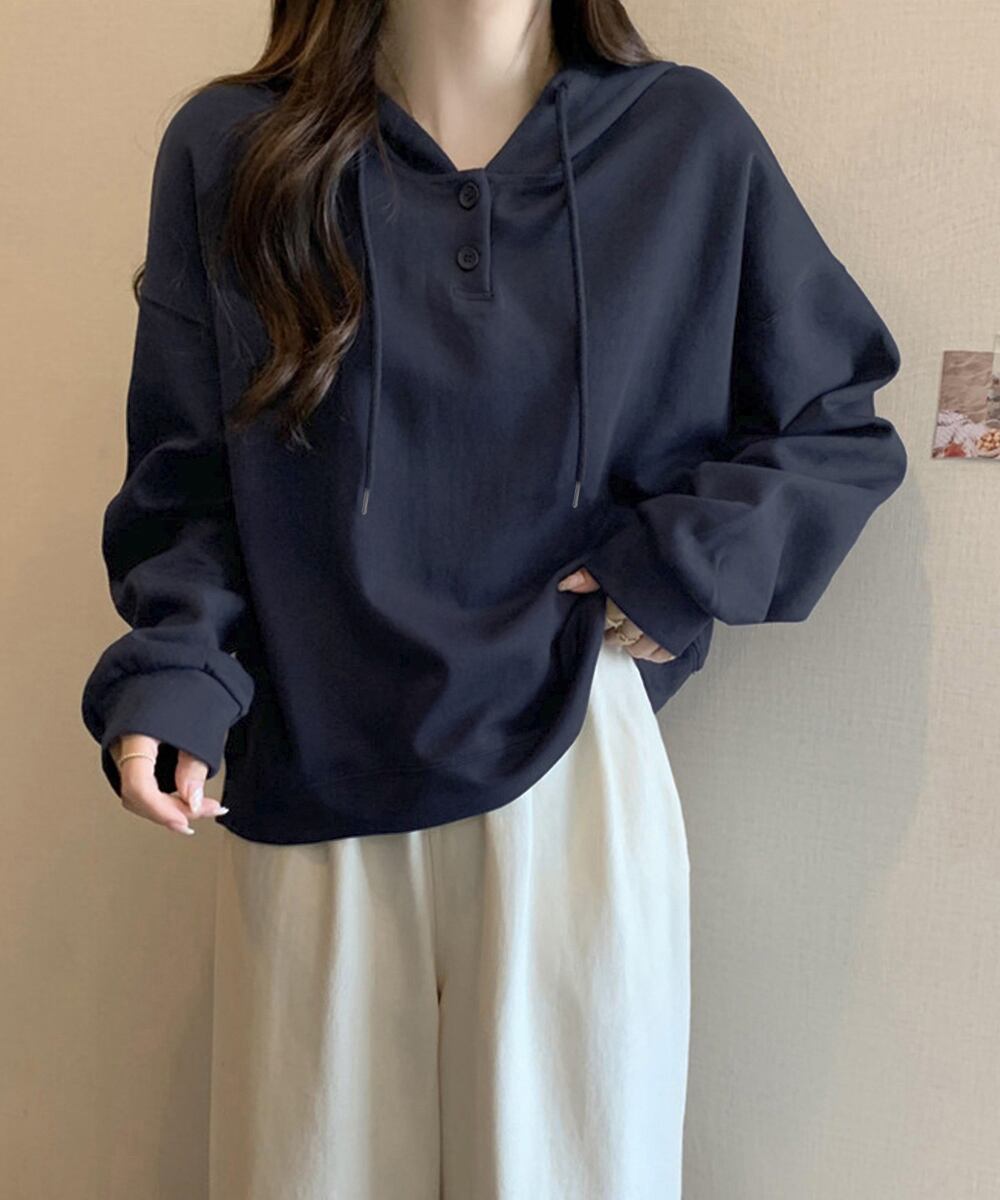 韓国風ゆったりシルエットの薄手レディースパーカー。