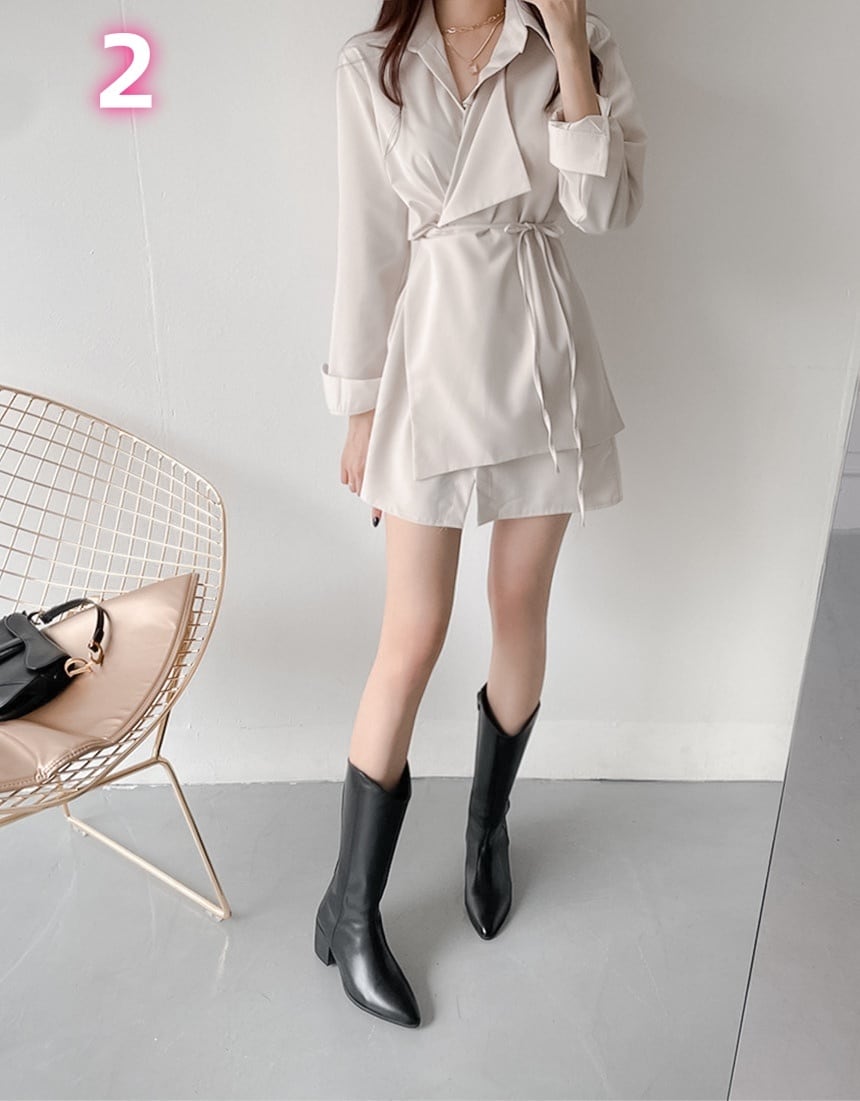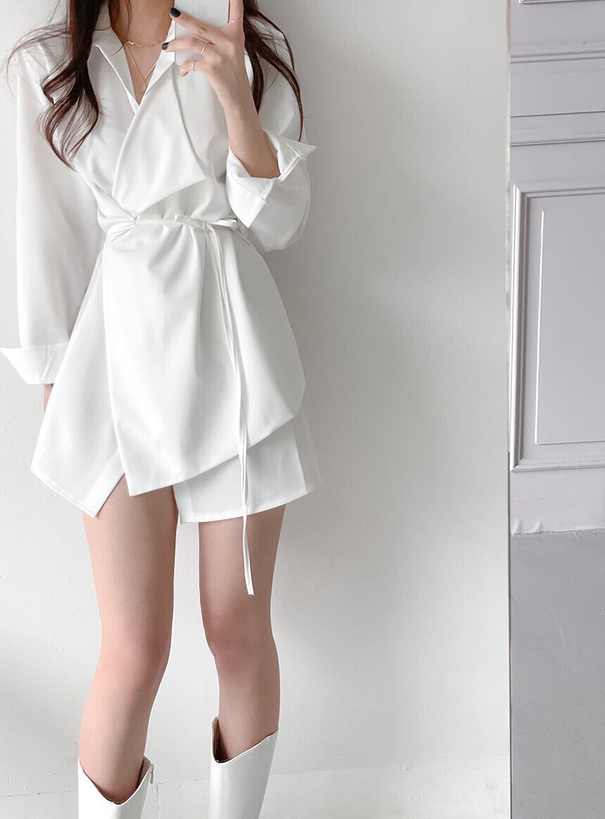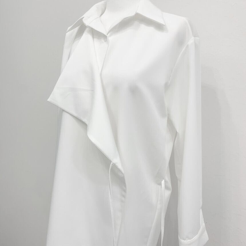 2025春秋新作 女 レディース ハイウエスト 長袖 無地 シャツ ミニ ワンピース ドレス 台型スカート