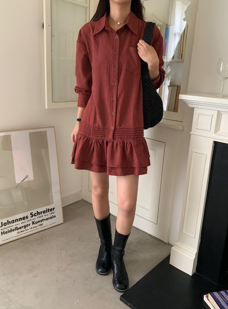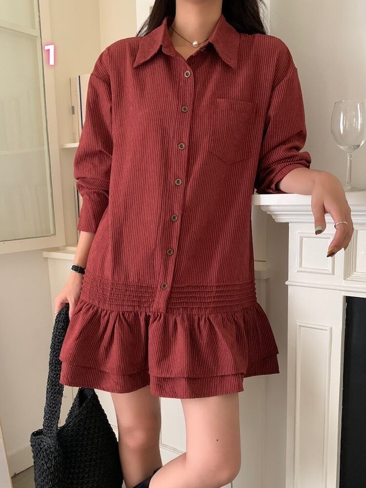 2025春秋新作 女 レディース ハイウエスト 長袖 シャツ ミニ ワンピース ドレス 台型スカート