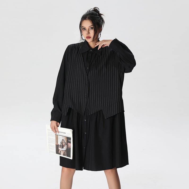 フェイク レイヤード ボーダー ゆったり スプライス ワンピース 2025秋新作