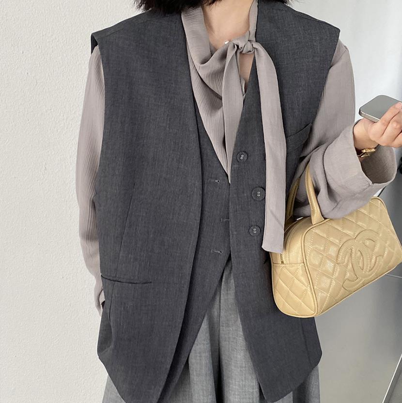 トップス レディース ジレ スーツ ベスト 通勤 Vカラー 韓国風 2025秋新作