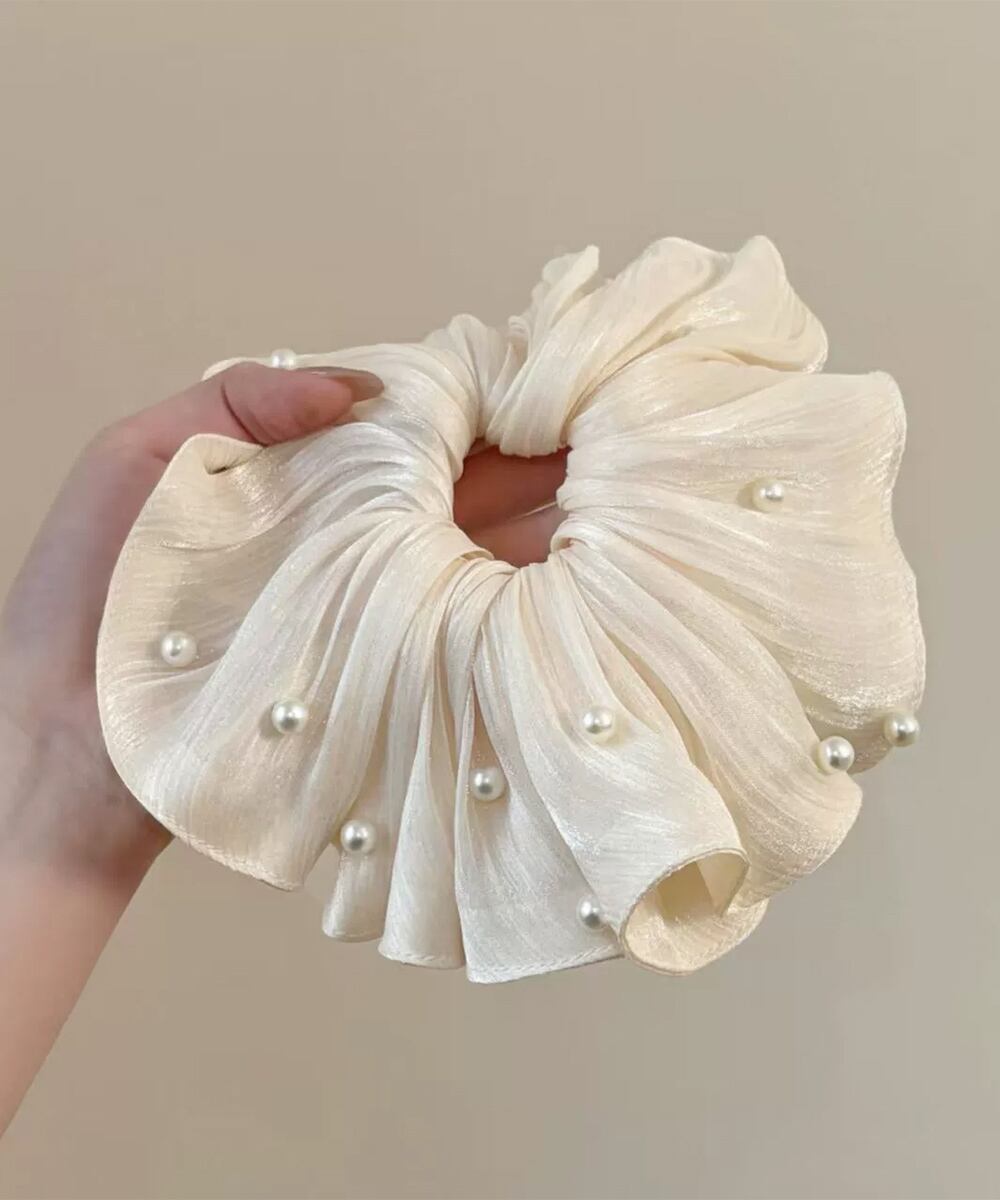 上品な輝きを放つパール付きシフォンシュシュ。