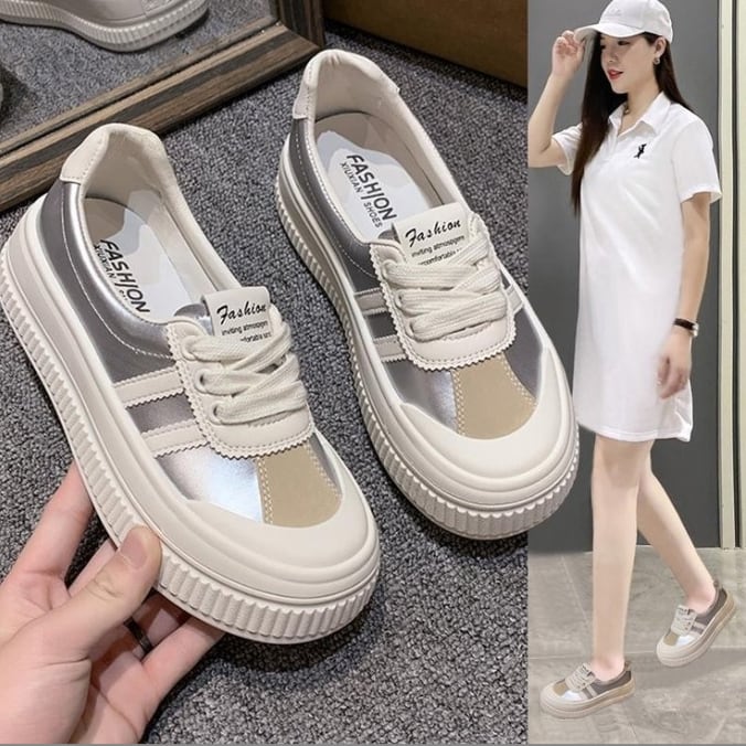 ・ベーシックなデザインの厚底スニーカー。