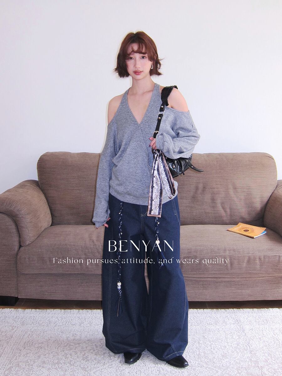 レディース ボトムス ロング丈 ワイドパンツ ジーンズ デニム フレンチ 2025秋新作