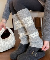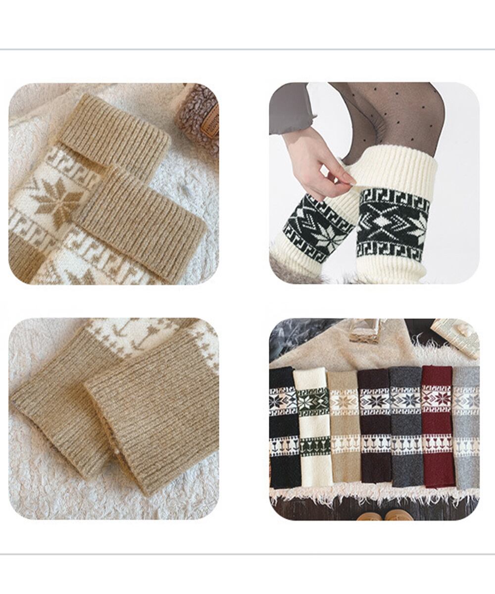 ウールタッチの厚手ニット素材を使用した、レディーススノーフレーク柄レッグウォーマー。