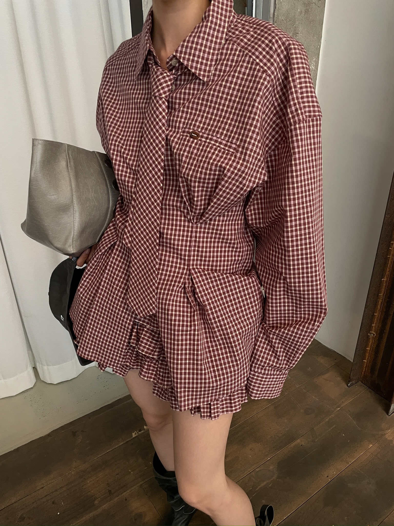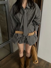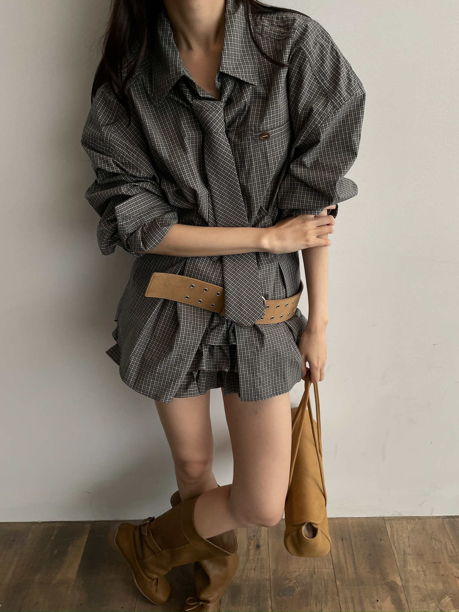 2025年INS 秋冬新作 気質 おしゃれ 個性的 チェックシャツ+レイヤードスカート セット