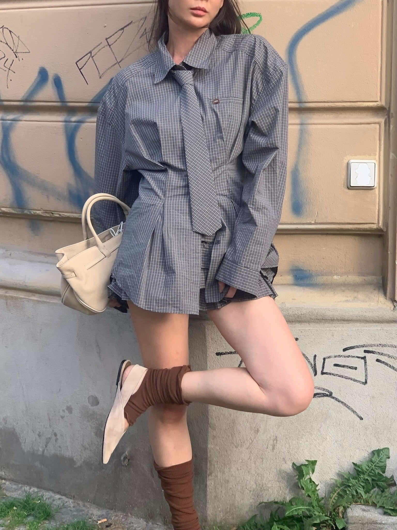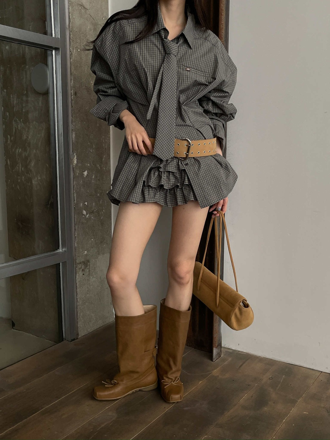 2025年INS 秋冬新作 気質 おしゃれ 個性的 チェックシャツ+レイヤードスカート セット