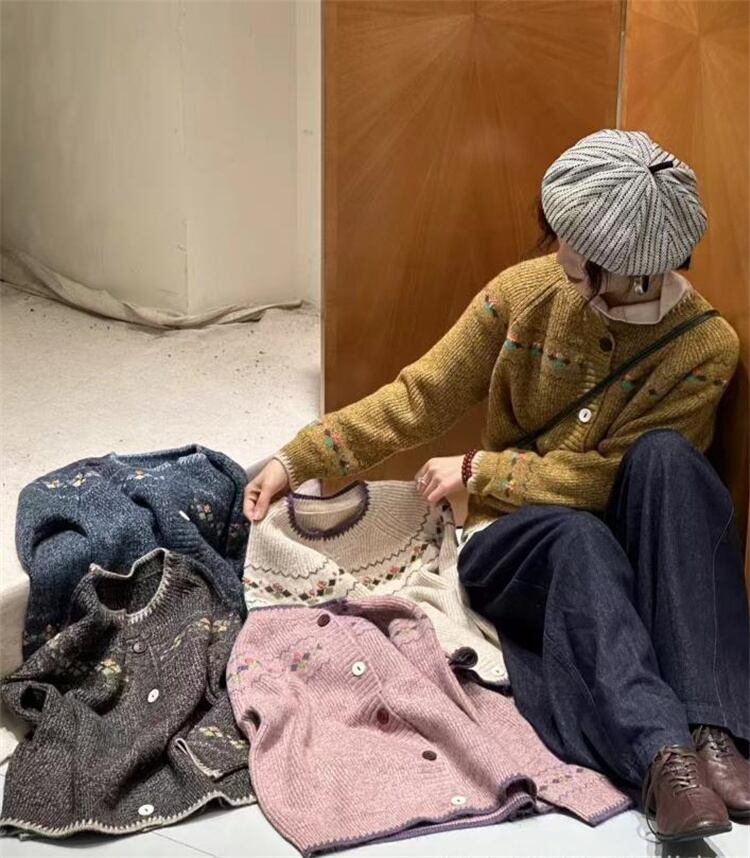 アートレトロニットアウター 2025秋モデル ゆるめ丸襟仕様
