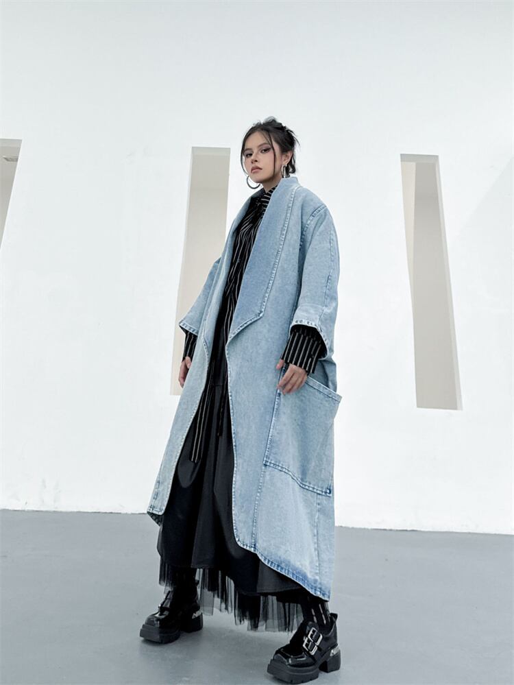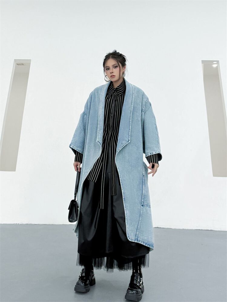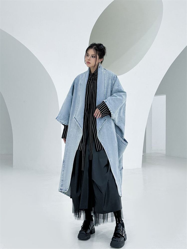 秋用 ゆったりとしたシルエット 実用的な大ポケット デニムコート