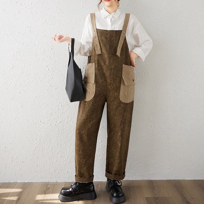 ・大きなポケットがアクセントのサロペットパンツ。
