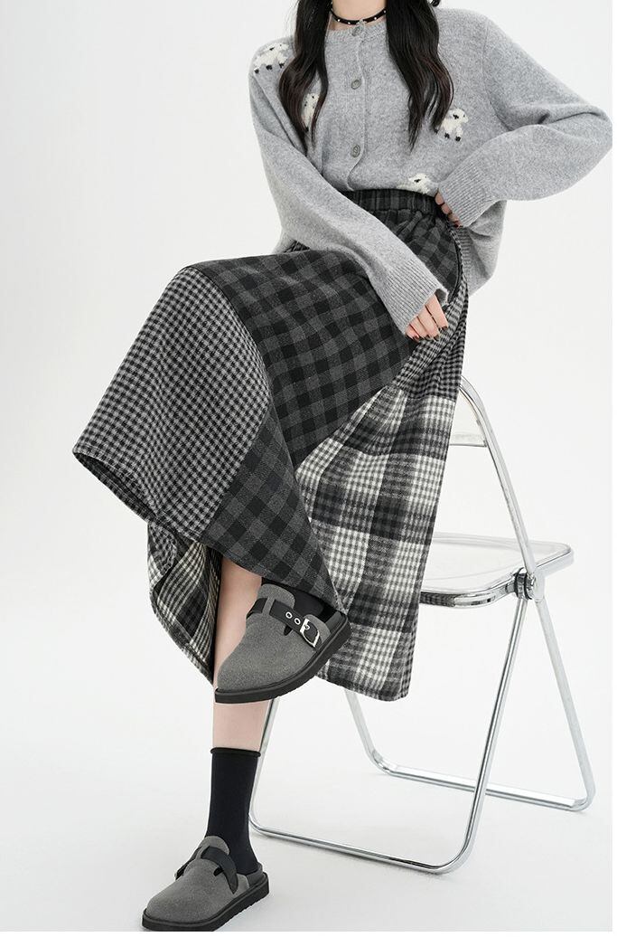 ボトムス 女 レディース ハイウエスト チェック柄 ロングスカート 台型スカート