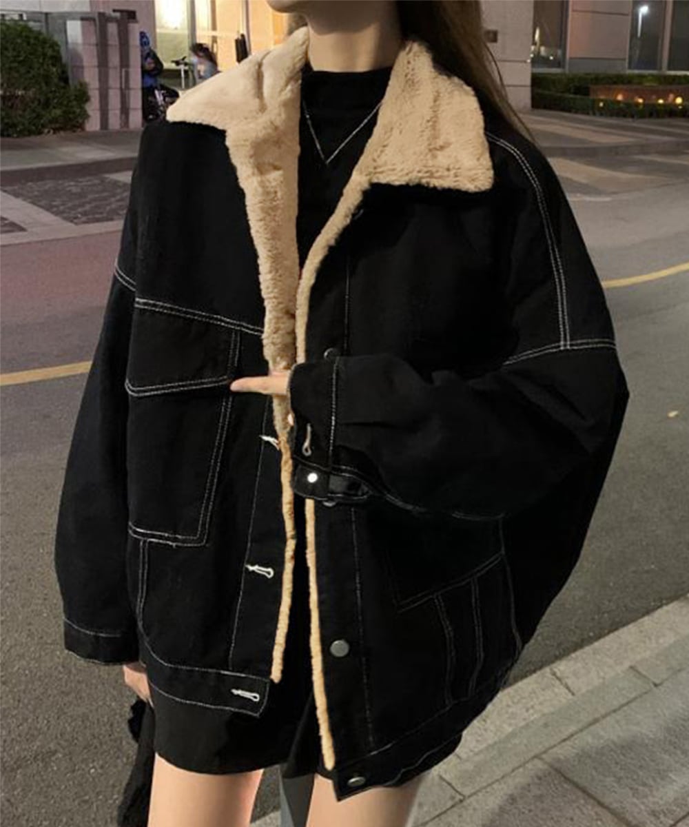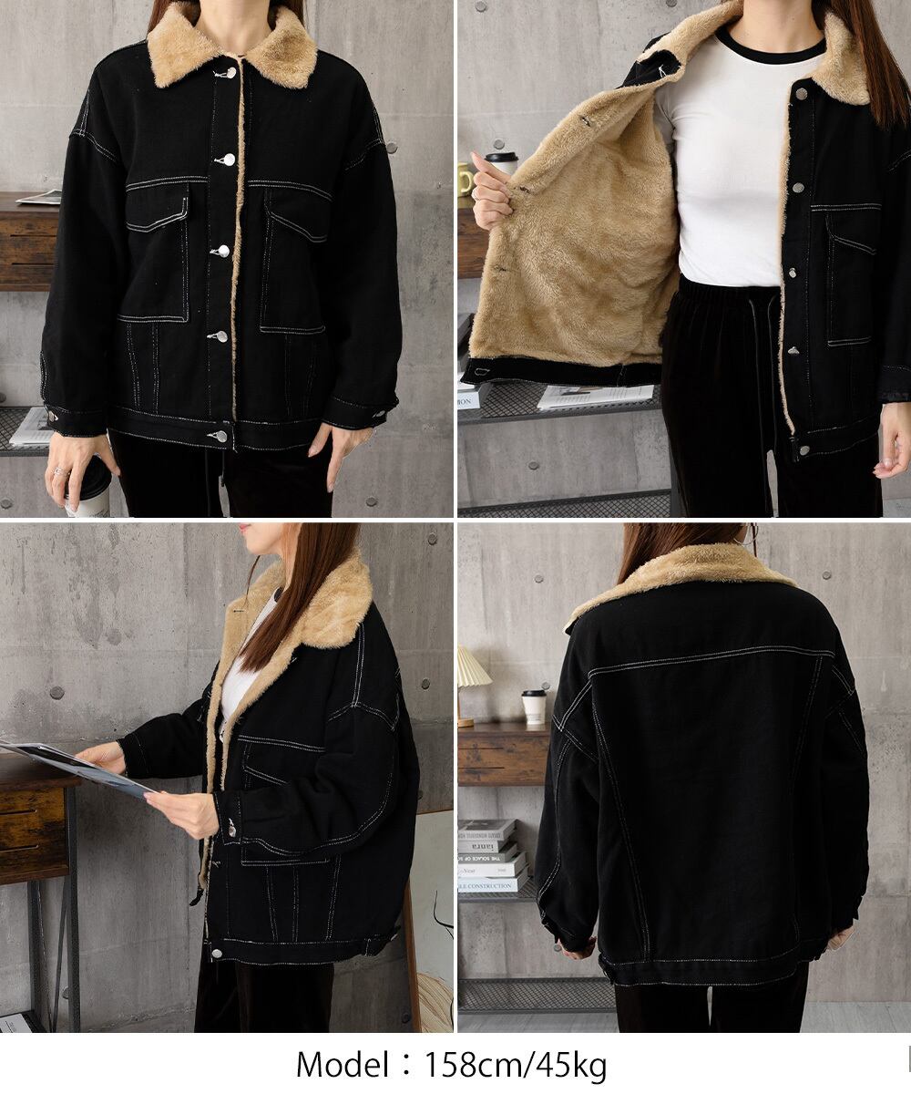 裏ファーデニムジャケットステッチブルゾン