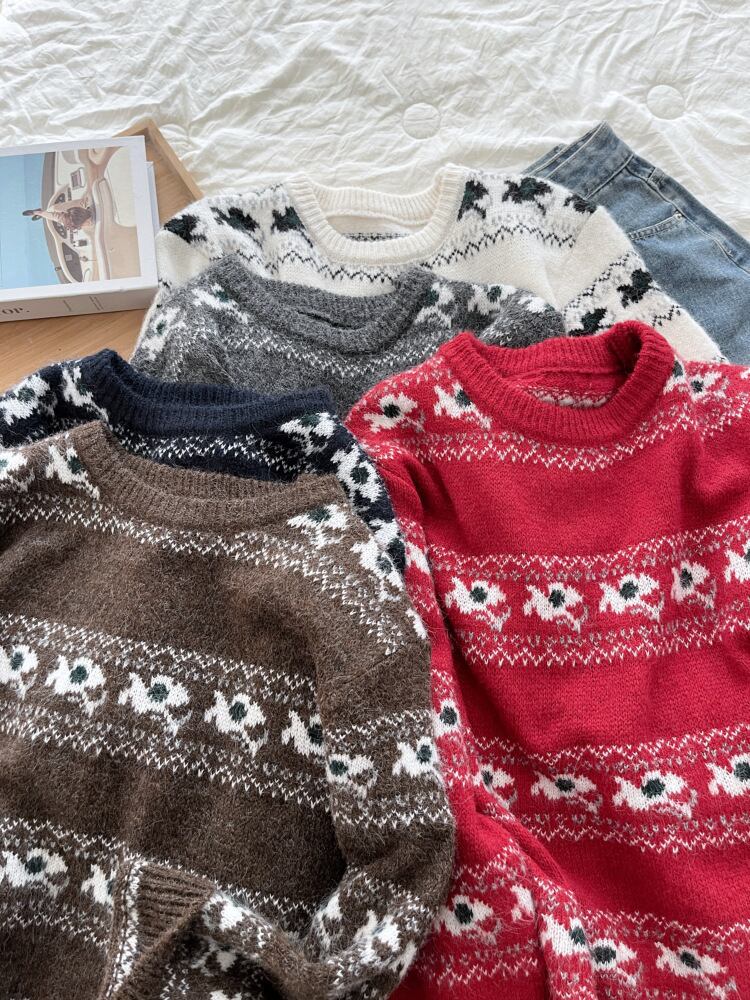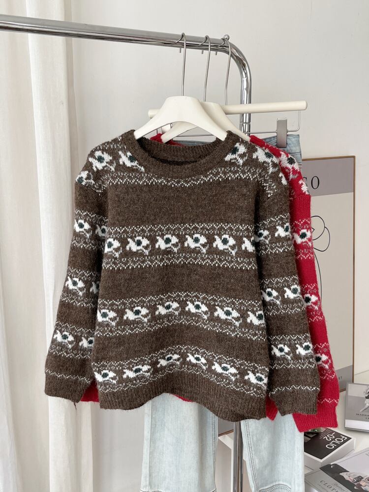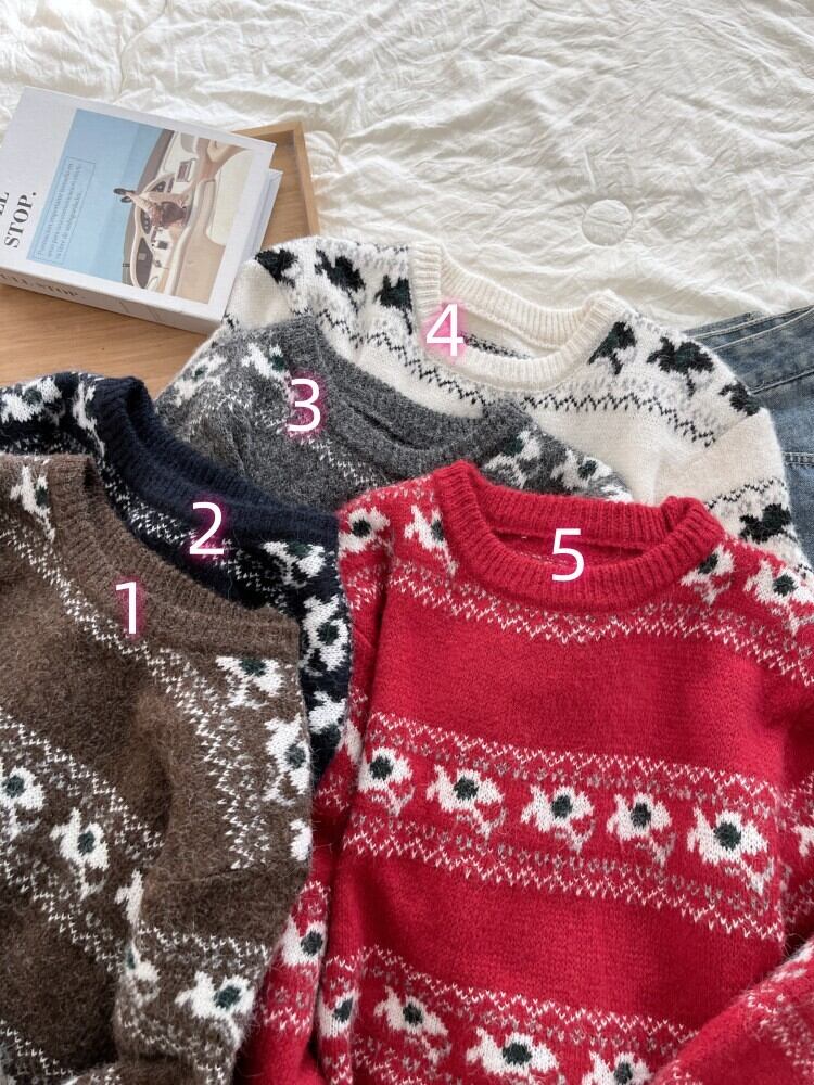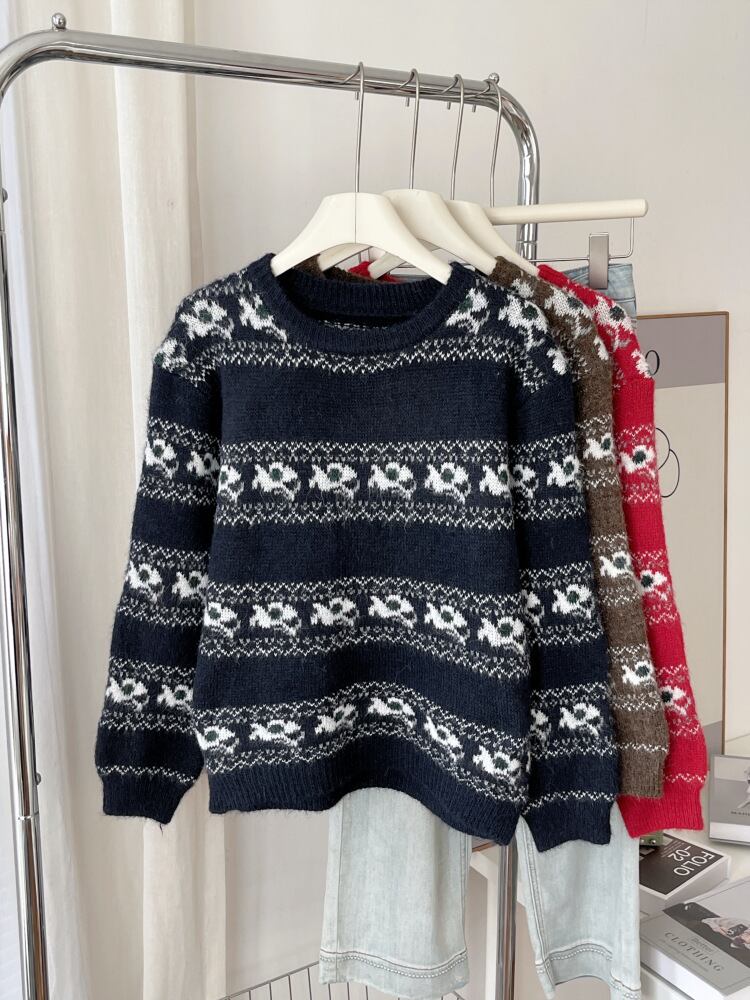 レディース ニット 毛糸 トップス 長袖 丸首 厚手 セーター カットソー