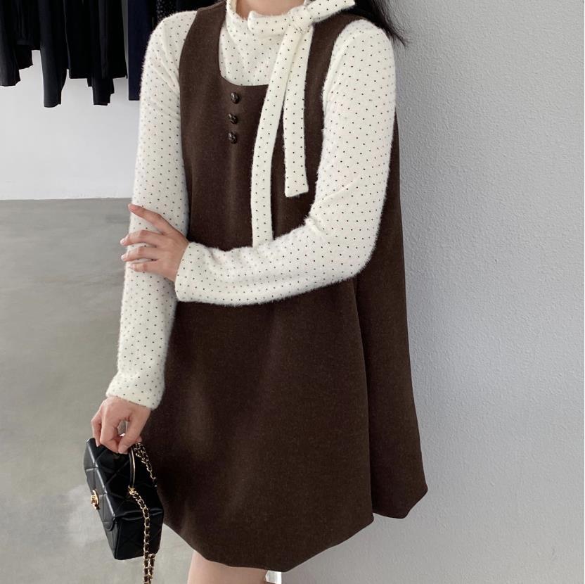 トップス レディース ベスト ワンピース チュニック セットアップ レトロ 2色