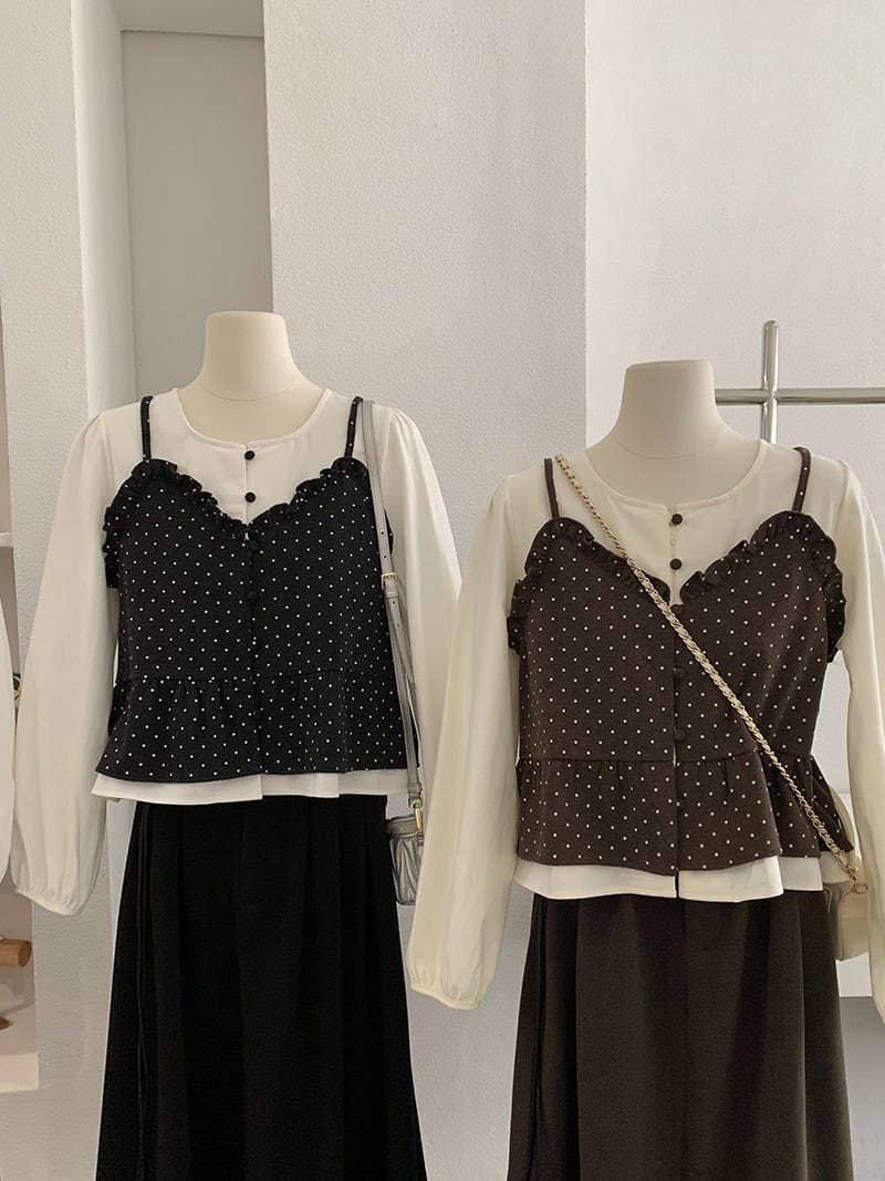 レディース 女 トップス インナー 袖なし キャミソール + 長袖 シャツ 2点セット