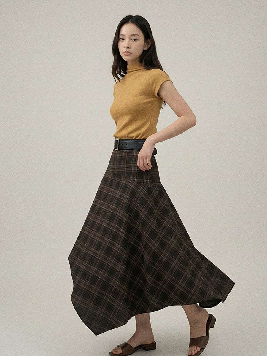 レディース ボトムス ロングスカート ハイウエスト 2色 チエック 韓国風